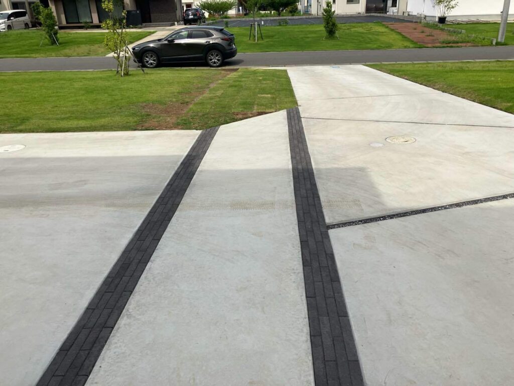 こちらは、土間コンクリートに近い色あいのグレーのインターロッキングを使用しました。