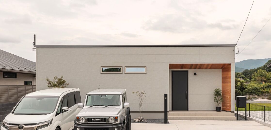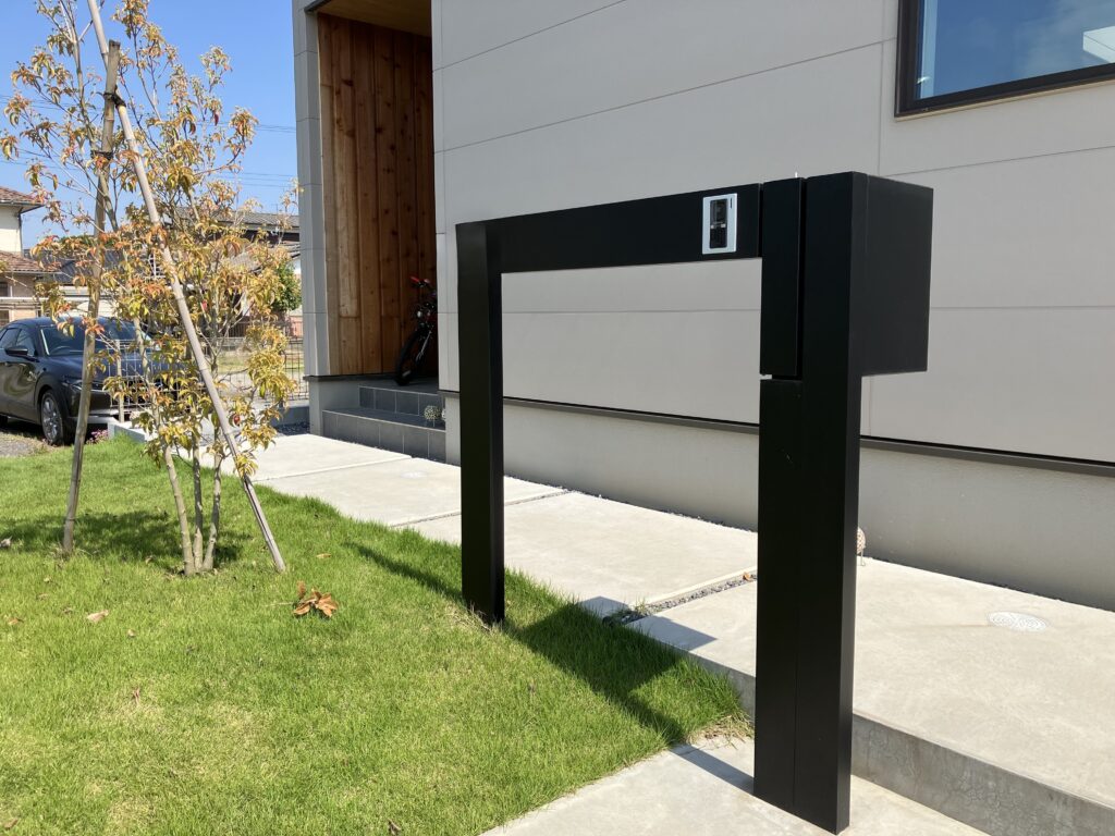建物の外壁から外して宅配ボックスを設置することで、少し存在感を減らしています。
