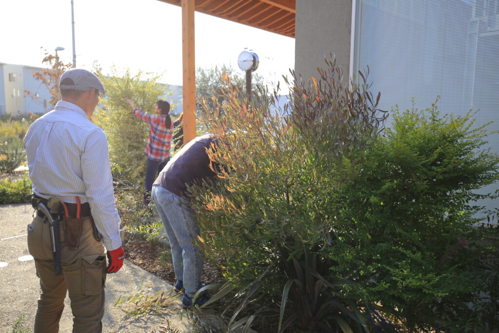 実際にお庭の木をみんなでチョキチョキと切りながら、実践していくワークショップ。
